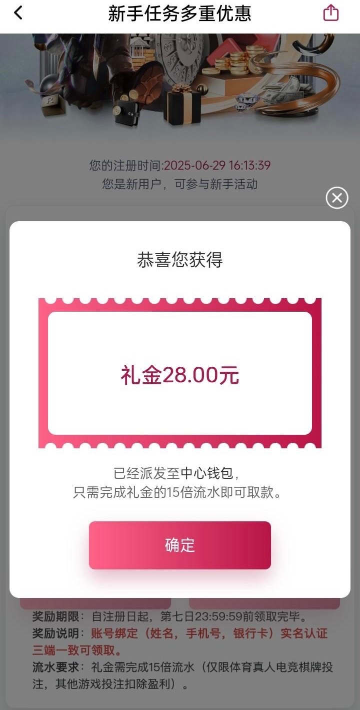 注册完善信息优惠领取彩金,15倍流水,最高提现100