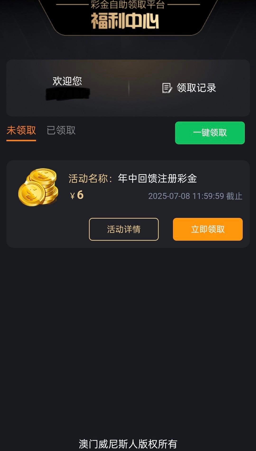 有号的兄弟们可以登入上去领一下历史注册彩金