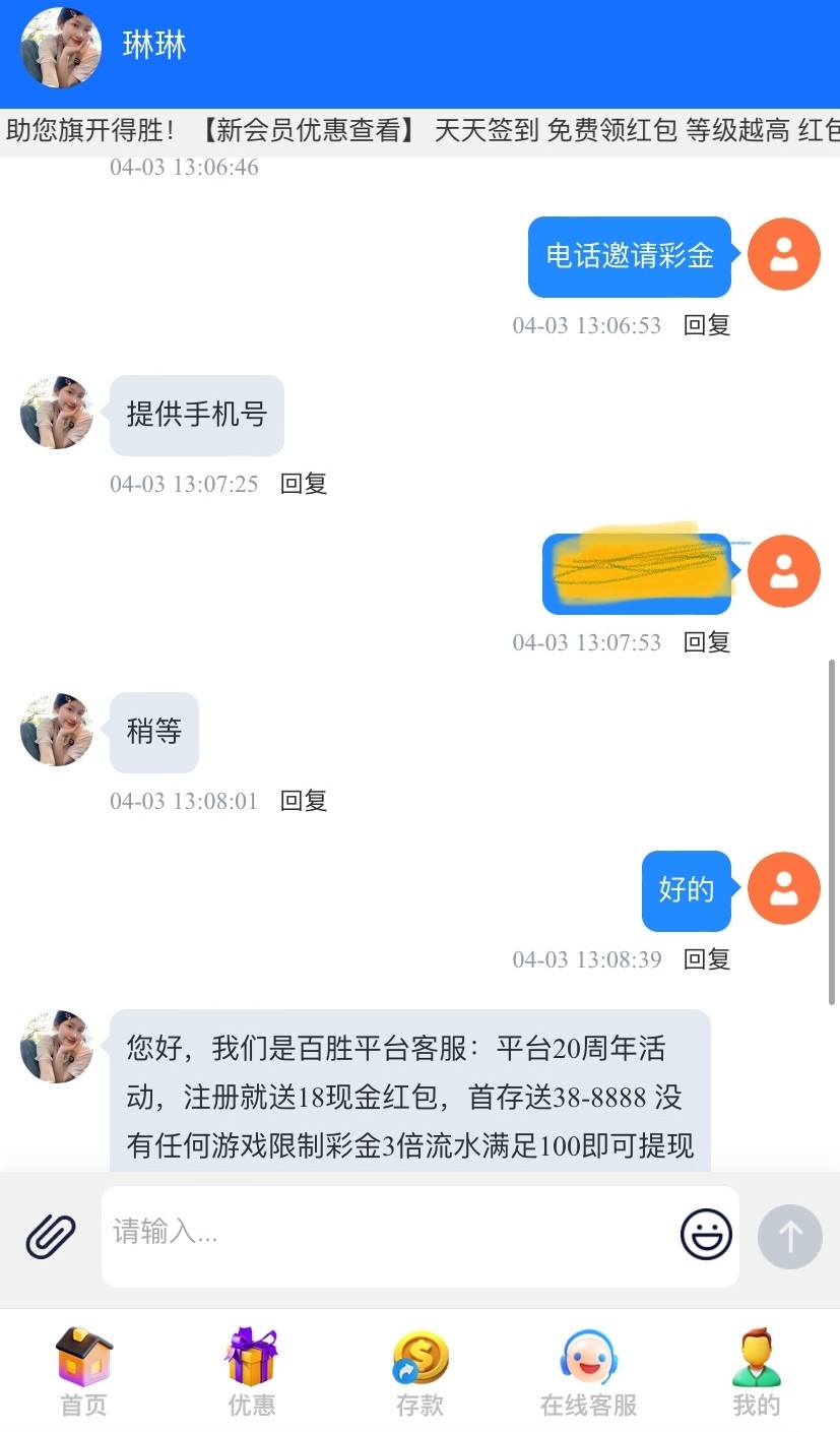 注册好联系在线客服碰瓷彩金,查手机号,没有游戏限制,3倍流水,满100提款